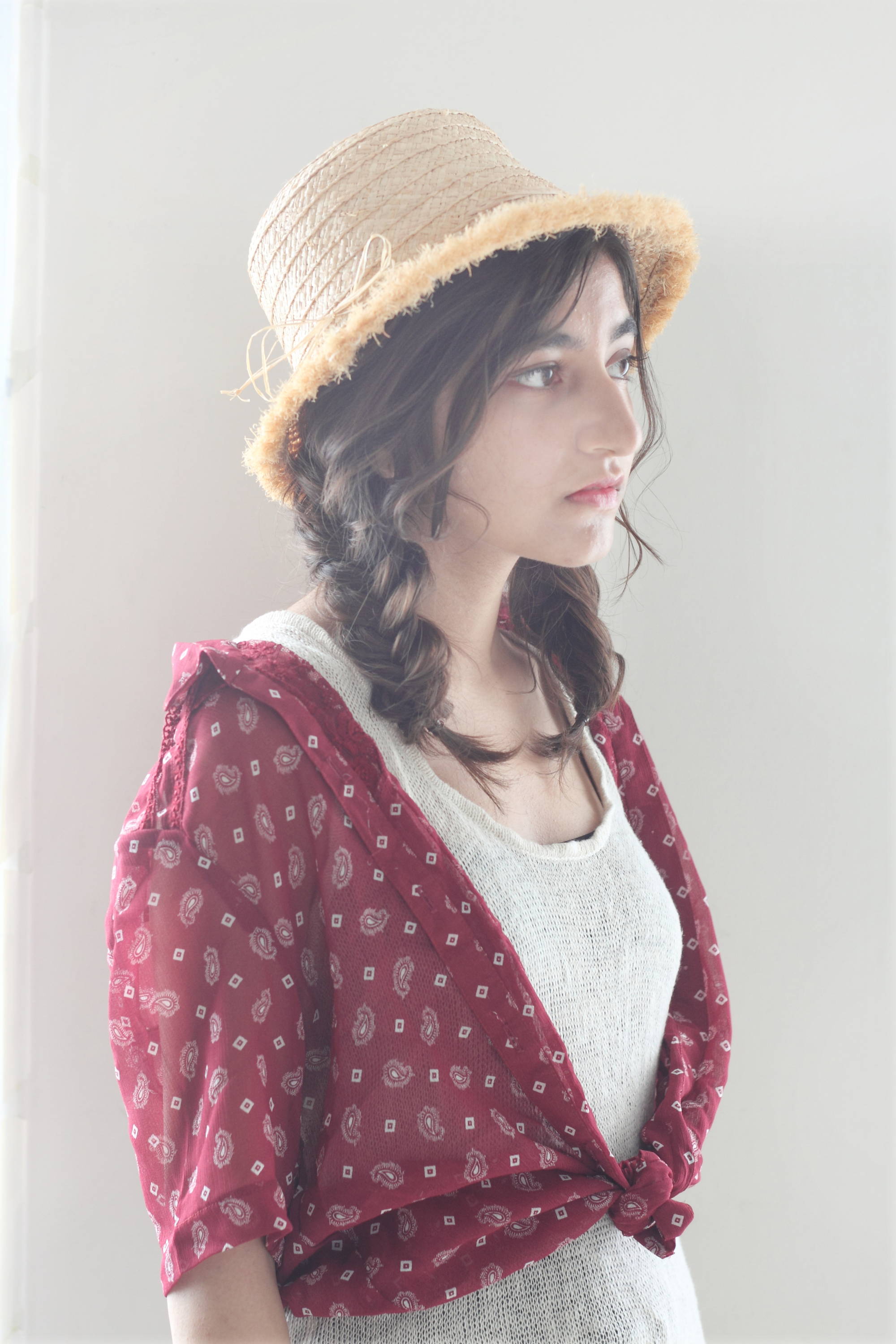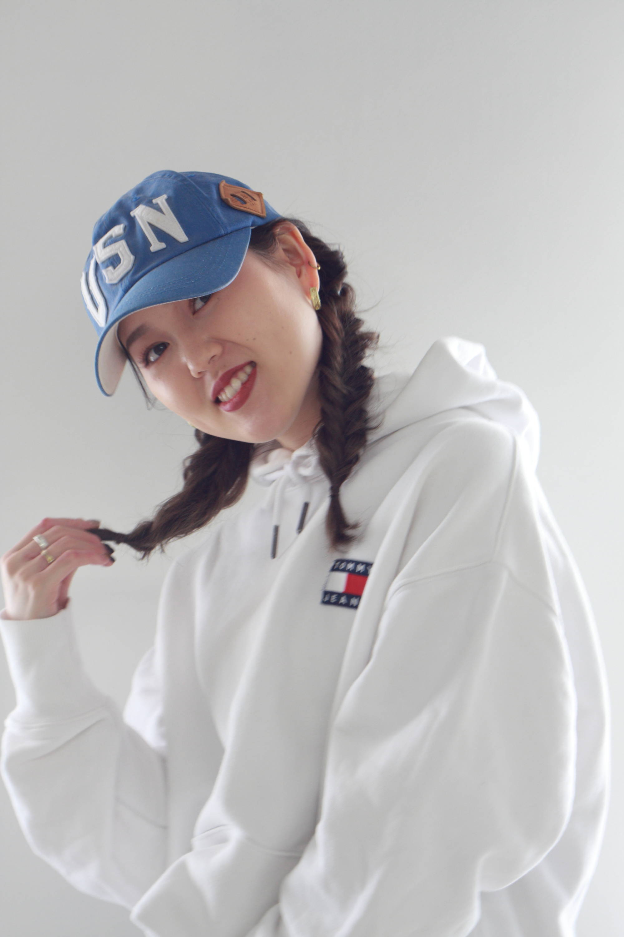 ハットに合わせる三つ編みアレンジ